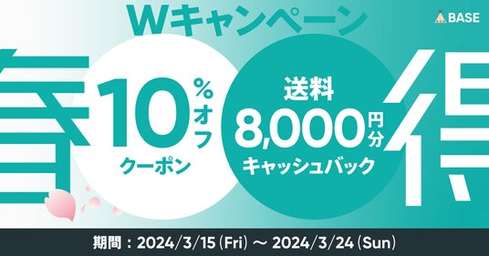 この度、BASE株式会社(所在地:東京都港区、代表取締役 CEO:鶴岡 裕太)が運営するネットショップ作成サービス「BASE(ベイス)」は、2024年3月15日(金)よりショップさま向けに「春得Wキャンペーン」を開始することをお知らせいたします。