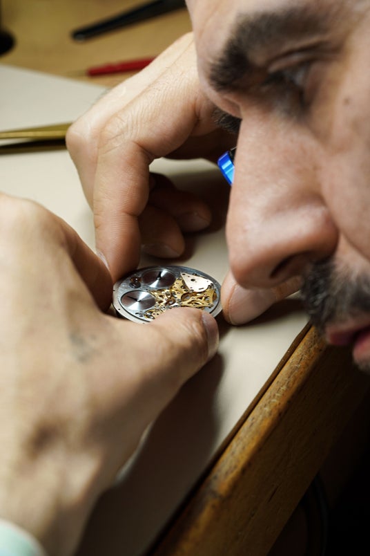 「当初の課題は、ムーブメント全体を主に1つから2つ、最大でも3つのレベルで設計することでした。正直なところ、この課題は私にとって大きな問題ではありませんでした。むしろ、それをパズルのように組み立てることが楽しかったのです。良いパズルのように、工夫し、非凡な解決策を見つけ、最良のオプションを選び、エネルギーの流れを計算する必要がありました」とチャイキンは振り返ります。ムーブメントの全ギアシステムは、駆動装置を含めて2つのレベルに構築されています。もちろん、さらにメインプレートとブリッジの2つのレベルがあります。