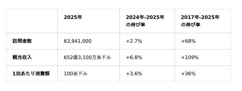 2025年、トルコの観光業は大きな成長を遂げ、訪問者数は約6,400万人(前年比2.7%増)、観光収入は652億3,100万米ドル(前年比6.8%増)に達し、いずれも過去最高を記録しました。日本からトルコへの訪問者数も161,103人となり、対前年比19.6%増を達成。パンデミック前の2019年と比較しても、55.9%増と、着実な回復と成長を示しています。