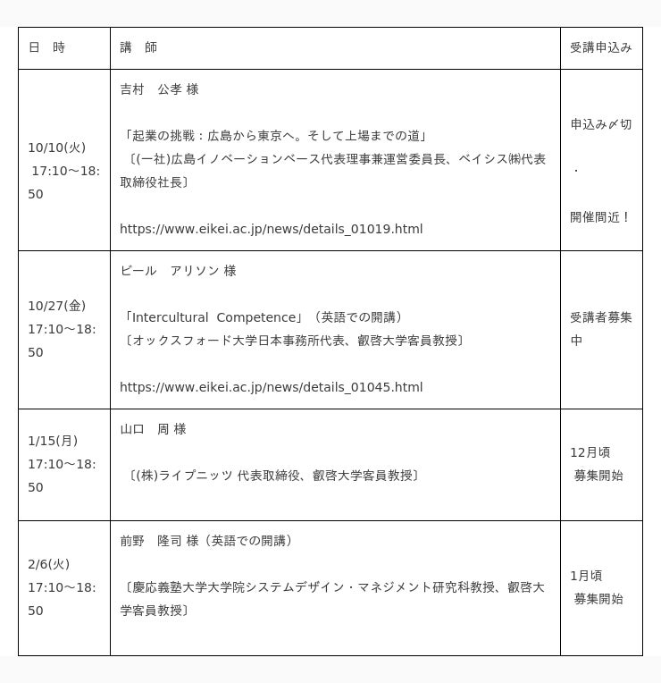 叡啓大学主催、学外の方が参加可能な公開講座等について、2023年度下期のスケジュールをご案内します。