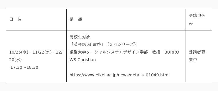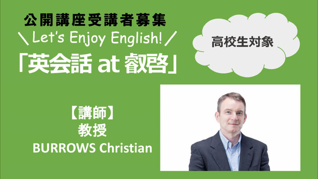 10-12月期の公開講座は、高校生を対象に「Let’s Enjoy English~英会話 at 叡啓~」と題して、全3回シリーズを開催します。