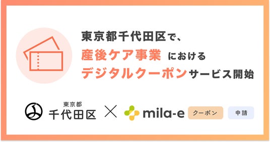 株式会社ミラボ(本社:東京都千代田区、代表取締役:谷川一也、以下「ミラボ」)は、デジタルクーポンサービス「mila-e(ミライー) クーポン」、自治体窓口DXサービス「mila-e(ミライー) 申請」の東京都 千代田区への提供が決定し、産後ケア事業においてデジタルクーポンの運用を開始しました。
