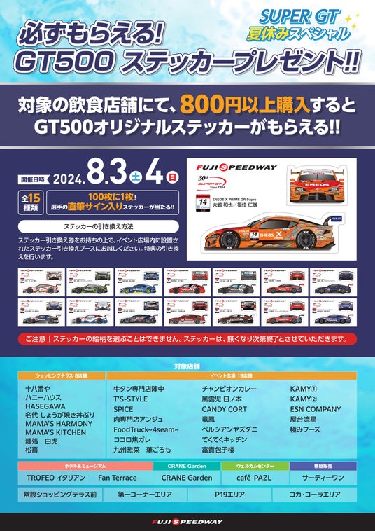 [詳細ページ] https://www.fsw.tv/motorsports/race/super-gt/2024-rd4-service.html