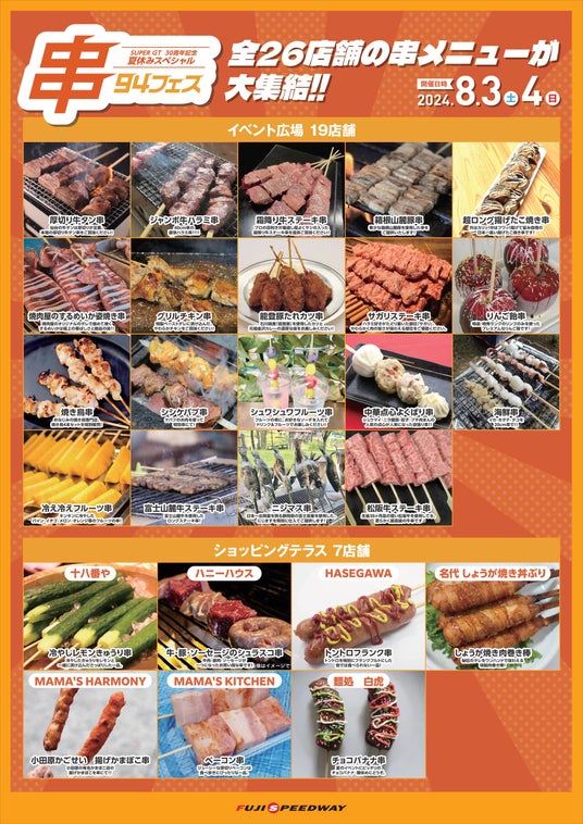 全26 店舗の“串“メニューが富士スピードウェイに大集結します!!