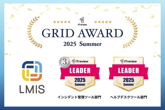 株式会社ユニリタ(本社:東京都港区、代表取締役 社長執行役員:北野 裕行、東証スタンダード市場:3800、以下 ユニリタ)が提供するサービスデスク機能を中心としたサービスマネジメントプラットフォーム「LMIS(エルミス)」は、アイティクラウド株式会社(本社:東京都港区、代表取締役社長:黒野 源太)が主催するアワード「ITreview Grid Award 2025 Summer」の「インシデント管理ツール」部門と「ヘルプデスクツール」部門において、満足度・認知度ともに優れた製品であると評価され、最高位である「Leader」を受賞しました。