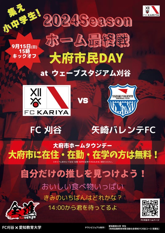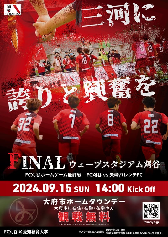 地域協働教育体験活動として愛知教育大学の学生が9/15FC刈谷ホーム最終戦のプロモーションを学生とクラブが一緒に取り組みホーム最終戦を盛り上げます。