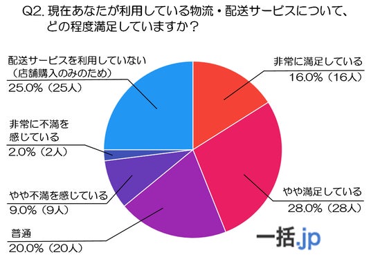 調査結果2:現在あなたが利用している物流・配送サービスについて、どの程度満足していますか?