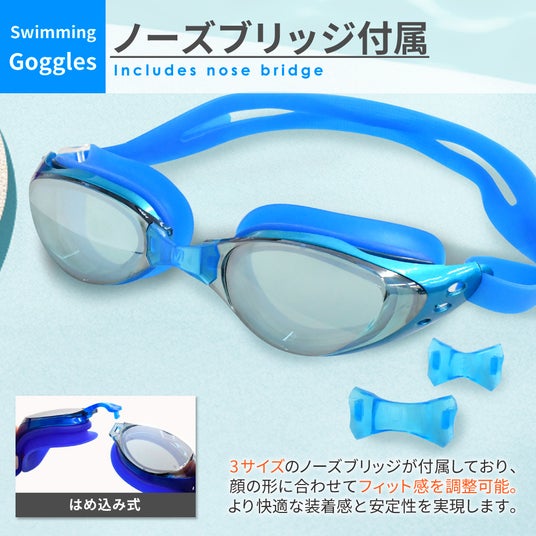 3サイズのノーズブリッジが付属しており、顔立ちに合わせて細かく調整可能。鼻にしっかり沿うように固定でき、泳いでいる最中も位置がずれにくく、違和感を感じにくい着け心地です。