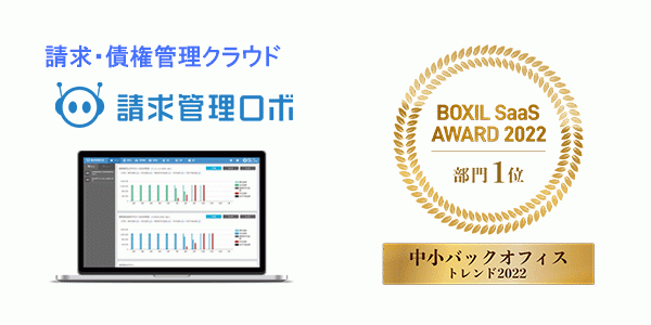 請求管理ロボが受賞した「SaaS トレンド大賞 中小バックオフィストレンド2022」は、『SaaS業界レポート2021』の「SaaS業界の7つのトレンド」より、各トレンドに沿い、かつ先進性を体現しているサービスを表彰する「SaaS トレンド大賞 」部門において、ERP(基幹システム)、BtoB電子取引などに関連するサービスの事例に贈られる賞になります。
