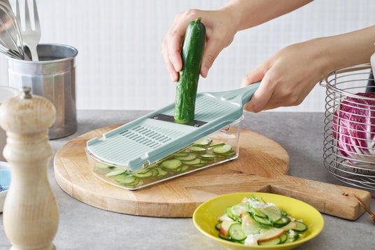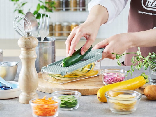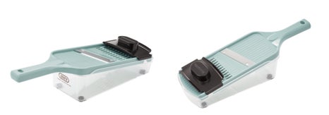 「薄切り」「細切り」「薬味おろし」ができる1台3役で、サラダやスープ、ちょっとした薬味づくりなど、さまざまな調理で大活躍!鍋やボウル、お皿の上でもサッと使える使い勝手の良さが魅力です。丸洗いができるのでお手入れも簡単!