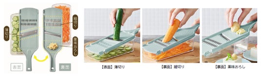 両面仕様の1台3役!「薄切り」「細切り」「薬味おろし」が可能
