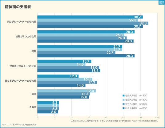 精神支援をしてくれる相手は「同じグループ・チームの先輩」がトップに