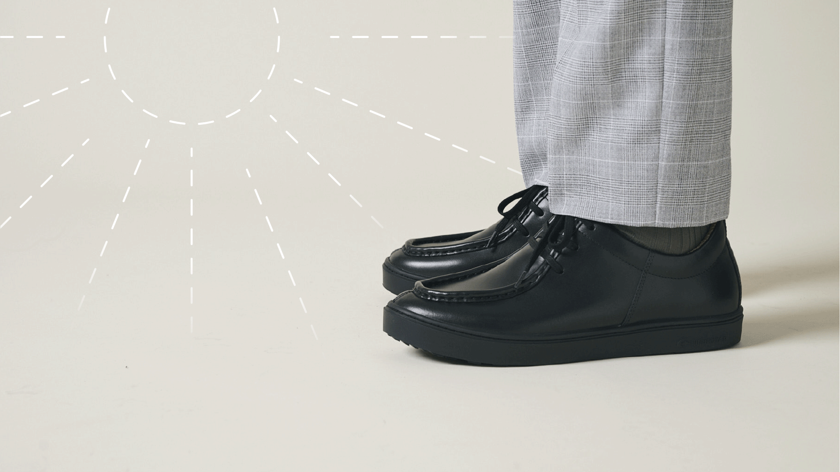 コンセプトは「紳士になれる靴」。身に着けるものにこだわり、年相応のファッションを意識し始める世代に向けて、「紳士」をキーワードに開発しました。30年以上の歴史をもつ日本初ウォーキングシューズ「WORLD MARCH」のノウハウを活かし、時流にあった「紳士になれる靴」を目指しています。ビジネスとデイリーどちらにも履ける汎用性とカジュアルソールなのに紳士靴のたたずまいを軸にデザイン。“革靴らしさ×カジュアル感”にこだわっています。本革を使用しながらも手の届きやすい身近な革靴であることも大切にしています。