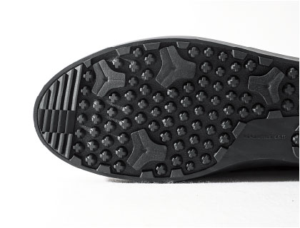 様々なシーンを想定して設計されたソール意匠は路面や芝上、