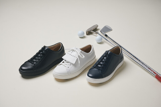 スポーツ由来のデザインを上品に仕上げた1足です。ホワイト、ネイビー、ブラックのクリーンなカラー展