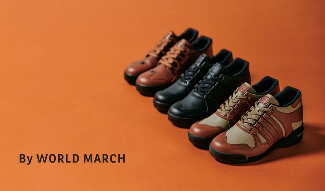 1987年に誕生したウォーキングシューズブランド、WORLD MARCH。開発のきっかけは、「日本人のためのウォーキングシューズをつくりたい」そんな一人の技術者の想いでした。各方面の専門家による検証を重ね、開発に費やした期間は約3年、歩行試験は地球一周分以上に相当する約50,000km。作り手の技と誇りが込められたシューズ達は日本のウォーキングシューズのパイオニアとして、現在も変わらない機能とデザインで人々から愛されています。