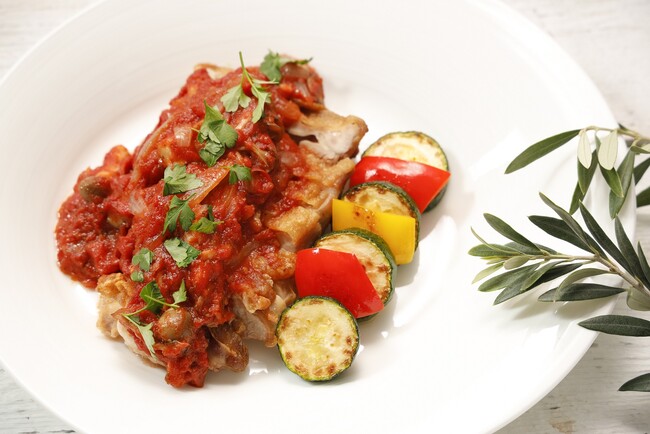 メインには、ナポリ地方の郷土料理で、白身魚をあさりと共に白ワインで蒸し、にんにくとオリーブオイルの香りがアクセントにきいた「アクアパッツァ」や、狩人が森の中で採れた食材を生かして調理したことが発祥とされる、鶏肉をトマトやキノコと共に蒸し煮することで旨味をぎゅっと閉じ込めた「カチャトーラ 鶏とトマトの猟師風煮込み」。さらには、イタリア家庭では特別な日に家族や友人と一緒に食べるお祝い料理の定番で、豚肉に香草を詰めて焼き上げることでジューシーな肉の旨みを楽しめる「ポルケッタ ポークの香草巻き」など、シェフこだわりのイタリア料理の数々を日替わりでご用意いたします。