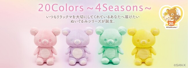 リラックマ20周年をお祝いして、1年を通して20色のぬいぐるみを発売!