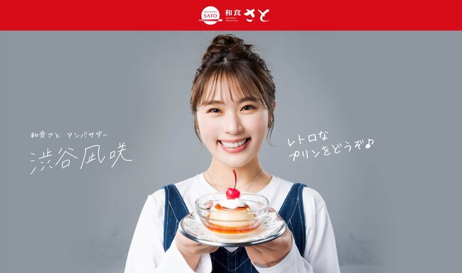 そして、和食さとアンバサダーの渋谷凪咲さんとのコラボ企画で誕生した『純喫茶さと』のメニューに、「昔ながらの店仕込みプリン 438円」が復活して仲間入り♪