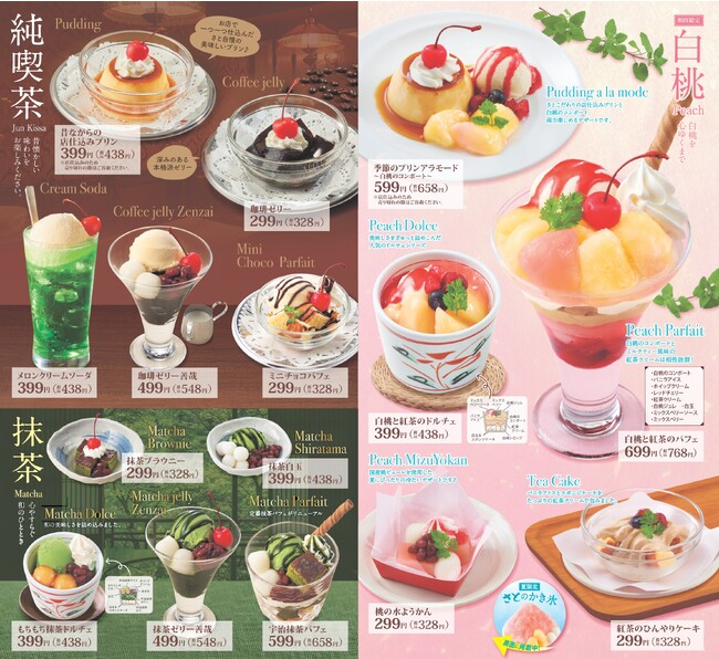 見た目にも華やかな白桃スイーツでほっこりカフェタイムを楽しんだり、「純喫茶さと」のレトロなメニューで懐かしい時間を過ごしたりと、和食さとのお店で是非楽しいひとときをお過ごしください。