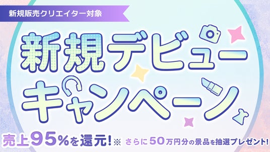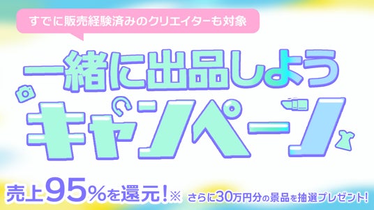はじめての出品を応援!対象期間中に販売されたデジタル商品の売上還元率が最大95%*に。さらに抽選で、総額50万円分の豪華景品をプレゼントします。