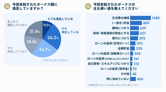 ボーナスの使い道は生活費の補填と一部貯金が多く満足度はやや低い