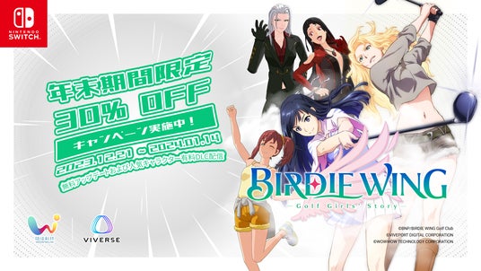 台湾台北(2023年12月21日)-世界初となる女子ゴルフをテーマとしたオリジナルアニメーション『BIRDIE WING』はバンダイナムコピクチャーズ制作のもと、製作委員会に参画したHTCのオープンメタバース VIVERSEが、WOWWOW TECHNOLOGY CORP. とタッグを組み開発し、今年6月にゴルフ体感Switchゲームソフト『BIRDIE WING -Golf Girls' Story-』を発売しました。ファンの皆様からの支持に応えるべく、本日より『BIRDIE WING -Golf Girls' Story-』の期間限定30%OFFキャンペーンを実施いたします。同日に配信開始の新コンテンツを多数含んだ無料アップデート、そして有料の新キャラクターであるアンダーグラウンドの「ローズ」と「ヴィペール」のDLCをきっかけに、楽しさいっぱいのゴルフの旅に出ましょう!