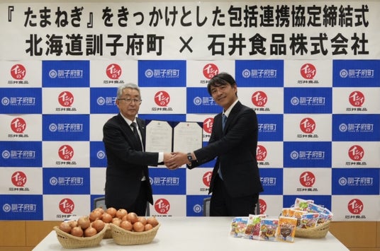 無添加調理※で商品作りを進めている石井食品株式会社(本社:千葉県船橋市、代表取締役社長執行役員:石井智康、以下、「石井食品」)はたまねぎの生産地として地方創生を進める北海道訓子府町(町長 伊田 彰、以下「訓子府町」)と令和7年4月9日(水曜日)「持続可能な町づくり」の実現に向けて、たまねぎをきっかけに、あらゆる世代を巻き込むまちづくり等に相互に連携・協力して取り組むため、包括連携協定を締結いたしました。