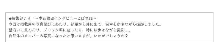 そのほか、本誌だけでしか見られないインタビューや連載も必見です。