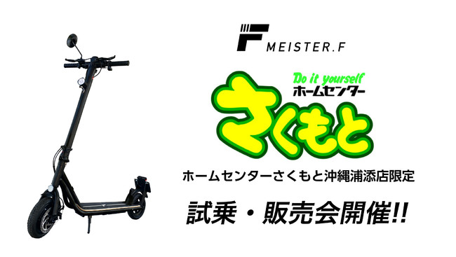 株式会社 FUGU INNOVATIONS JAPANは、ホームセンターさくもと浦添店限定イベントとして、店舗前の駐車場にて7月9日(土)と10日(日)に公道走行対応の「電動キックボード」と、重心移動で運転をコントロールする新感覚モビリティの「電動バランスボード」の試乗会を開催致します。ご試乗頂きアンケートに回答して頂いたお客様には、MEISTER.Fオリジナルグッズをプレゼントいたします。ぜひこの機会に、ホームセンターさくもと浦添店にお立ち寄りください。