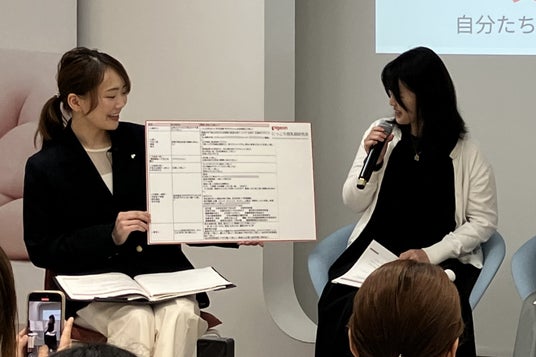 最後に、「私の産後ケア体験談」をテーマに宮下先生と、みやした助産院で産後ケアを受けたママが登壇。母乳ケアや赤ちゃんのお世話、夫婦間の悩み、気持ちが沈みそうなときなどに相談し、パパ外来も活用したと振り返り、「宮下先生やスタッフの皆さんが優しく受け入れてくれ、甘え方や頼り方を知りました。自分にとって専門家は『子育ての伴走者』と感じています」と話すと、宮下先生は「産後ケアなどでママの気持ちがほぐれると、次第に身体もほぐれていきます。育児の中で『困った』と感じた時に、それを言葉にすることは成長の一歩です。一人で抱え込まず、専門家や仲間、信頼できる相手に相談することを大切にしてほしいです」と締めくくりました。