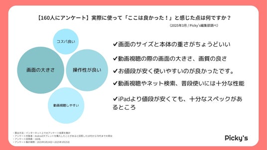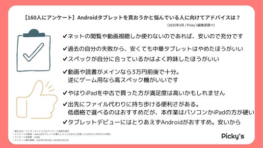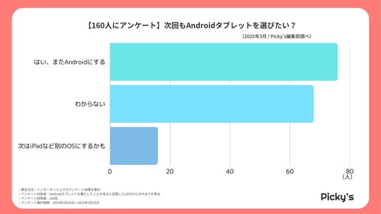 このたびPicky’s(https://picky-s.jp/)およびPicky’s Life(https://pickys-life.jp/)では、インターネット上でAndroidタブレットに関するアンケート調査を行いましたので発表いたします。