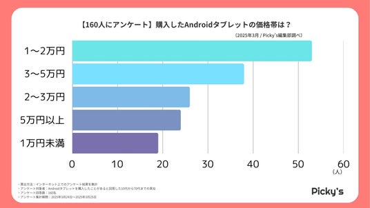 Androidタブレット購入者の価格帯ランキング|1~2万円台がボリュームゾーン