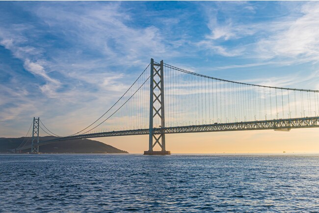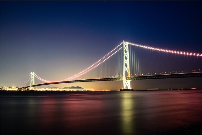 ライトアップされた明石海峡大橋の絶景を望む眺望