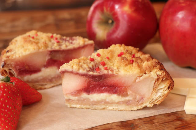 “おばあちゃんの味”をコンセプトにしたアップルパイ専門店。昨春初登場した人気の季節限定フレーバーが、京王百貨店限定で再登場します。特製パイ生地に自家製カスタードクリームとホワイトチョコレートを重ね、ほど良い酸味が特徴のジョナゴールドとイチゴをあわせて焼き上げています。