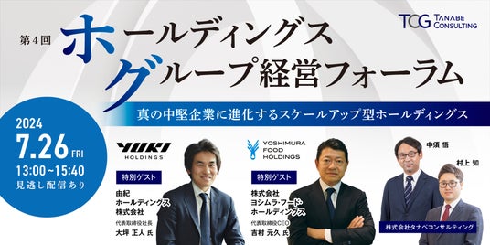 日本の経営コンサルティングのパイオニアである株式会社タナベコンサルティング(本社:東京都千代田区・大阪市淀川区、代表取締役社長:若松 孝彦)は、2024年7月26日(金)13:00~15:40に、無料ウェビナー「第4回ホールディングス グループ経営フォーラム」を開催いたします。URL:https://bit.ly/hd_20240726_prerelease