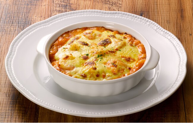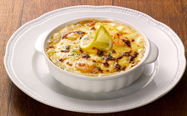 海老の旨味が凝縮されたアメリケーヌソースと濃厚でコクの深いモルネソースをかけて焼き上げた、魚介本来の美味しさを堪能できるごちそうドリアです。