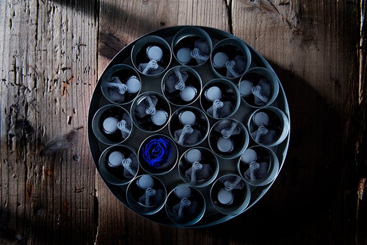 鏡をもつ者の写真が入った小さな器、そして一輪の青い薔薇。密集して並べられ、合わせ鏡のようにしてイメージは無限に繰り返され拡張していく。写真家・堀清英による銀塩とデジタル出力の写真作品約30点をはじめ、モノと写真をコラージュするように制作した立体作品で構成する展覧会。