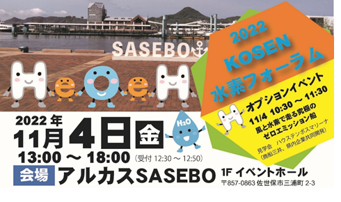 独立行政法人国立高等専門学校機構 佐世保工業高等専門学校(長崎県佐世保市 校長:中島 寛 以下「佐世保高専」)は、水素エネルギーをキーワードにカーボンニュートラル社会を支える地域社会創出・人材育成のため、高専(教職員・学生)・大学・企業関係者が集う「KOSEN水素フォーラム2022」を2022年11月4日(金)に開催いたします。