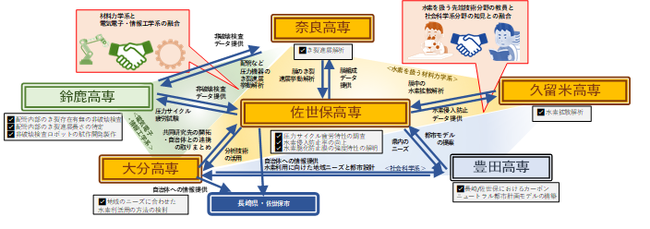 国立高専機構GEAR5.0エネルギー・環境ユニットでは、令和4年度より「水素社会実現に向けた社会インフラ構築のための研究開発と人材育成」をテーマに、佐世保高専を中核校として、5高専(豊田高専・鈴鹿高専・奈良高専・久留米高専・大分高専)の協力校と連携して取り組んでいます。