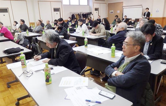 6人の登壇者の議論に熱心に耳を傾けるまちづくり会議の参加者たち