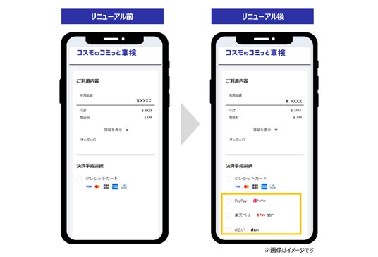 さらに、リニューアルに合わせ、「コミっと車検」のお支払い方法として新たに「PayPay」「d払い」「楽天ペイ」が利用できるようになります。