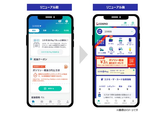 コスモエネルギーホールディングス株式会社(代表取締役社長:山田 茂)のグループ会社であるコスモ石油マーケティング株式会社(代表取締役社長:高山 直樹、以下「当社」)は、自社のスマートフォンアプリ「カーライフスクエア」を全面リニューアルし、4月21日(月)に「【コスモの公式】アプリ」としてリリースすることをお知らせいたします。