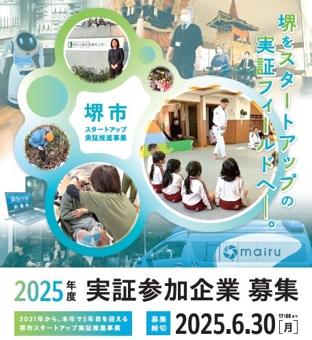 堺市では、市内外のスタートアップ等を対象に、本市における社会課題解決やイノベーション創出に資する新たなビジネスアイデアを以下のとおり募集します。支援対象事業者を選定し、中百舌鳥エリアをはじめとする堺市内で行う実証機会の提供や実証事業にかかる費用の提供などによりスタートアップビジネスの実現を支援します。
