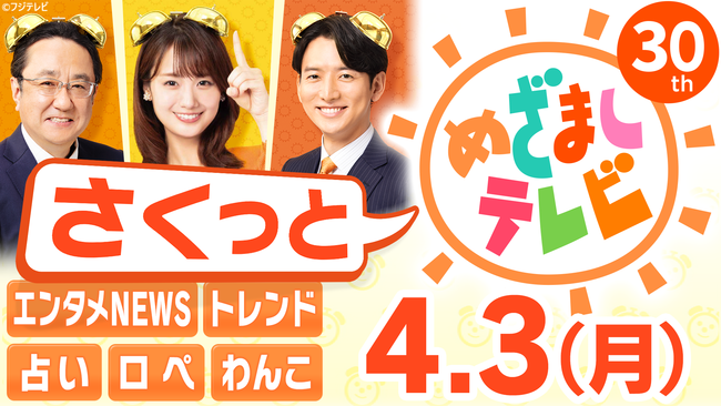 「さくっと!めざましテレビ」毎週(月)~(金)朝9時頃に配信予定