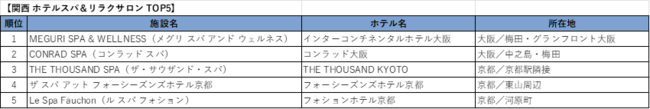 『一休.comスパ』で人気を集めたホテルスパ・リラクサロンの年間ランキングで、「関東 ホテルスパ」「関西 ホテルスパ&リラクサロン」「関東 リラクサロン」の3部門の表彰となります。2021年11月~2022年10月までの取扱高に基づいたランキングです。