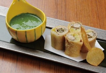 ◎純米超辛口と牡蠣と黄ニラの和風スナック春巻き(1,300円)
