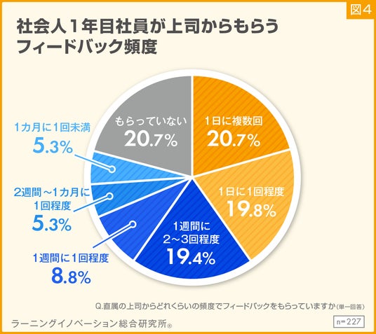 4. フィードバックをもらう頻度、「1日1回以上」は4割超、「もらっていない」が約2割