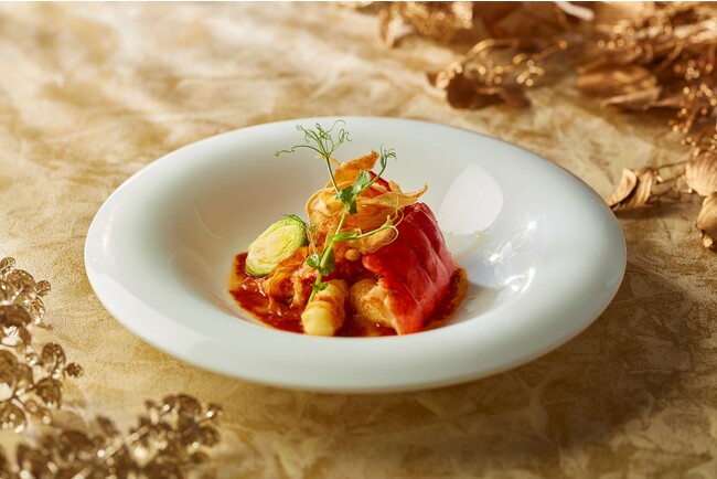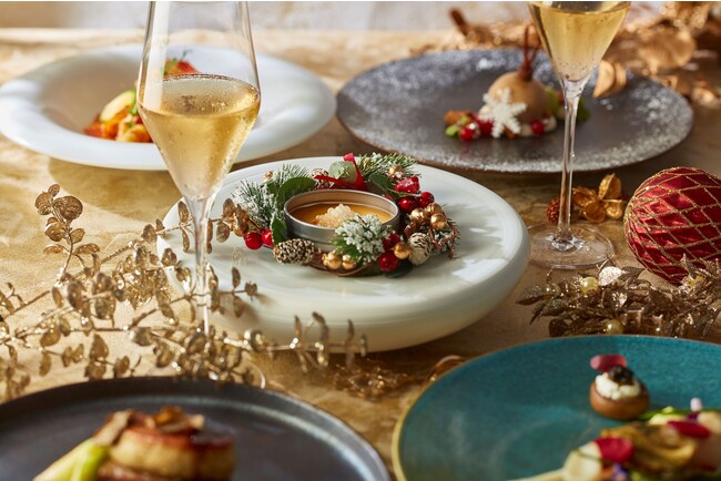 Fish Bank TOKYOで長年愛されているスペシャリテ「ウニのフラン」をリース仕立てのクリスマススタイルにした一皿から、前菜はアワビや日本の漁港から神経締めした鮮魚などFish Bank TOKYOらしい海の幸を使用した3つの饗宴スタイルで、お魚料理はオマール海老を使用した食べ応えのある1皿に、メインディッシュは厳選した牛フィレとフォアグラの「フォアグラと牛フィレのロッシーニスタイル 黒トリュフ香るソース」、デザートはパティシエがクリスマスの為に特別に考案した特別デザートと食後に自家製のマカロンをご賞味頂けます。