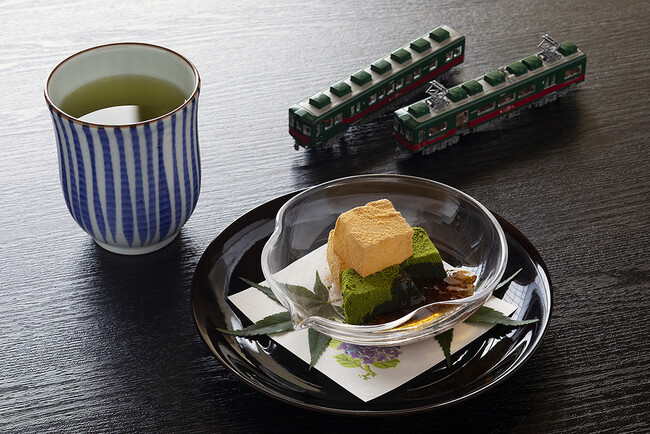 阪南市・箱作漁港で水揚げされた、この時期が旬の身が締まった真蛸はお造りに。夏に身が太くなる鱸や、天婦羅にした旬菜はどちらも泉州産。素材そのものを味わうために、天婦羅には岸和田市「鯨屋」の羊水塩を添えました。その他にも旨味が濃い和歌山産しらすの混ぜご飯や、創業明治30年の老舗、黒門市場「伊勢屋」のお漬物など、南海電鉄沿線の美味を詰め込まれたメニューとなっています。追加料金でお楽しみいただけるデザートには、高野山の厳かな雰囲気と涼しさをイメージした、抹茶ときな粉のわらび餅 黒蜜ゼリーがけと堺市「つぼ市茶寮」の緑茶セットをご用意いたしました。